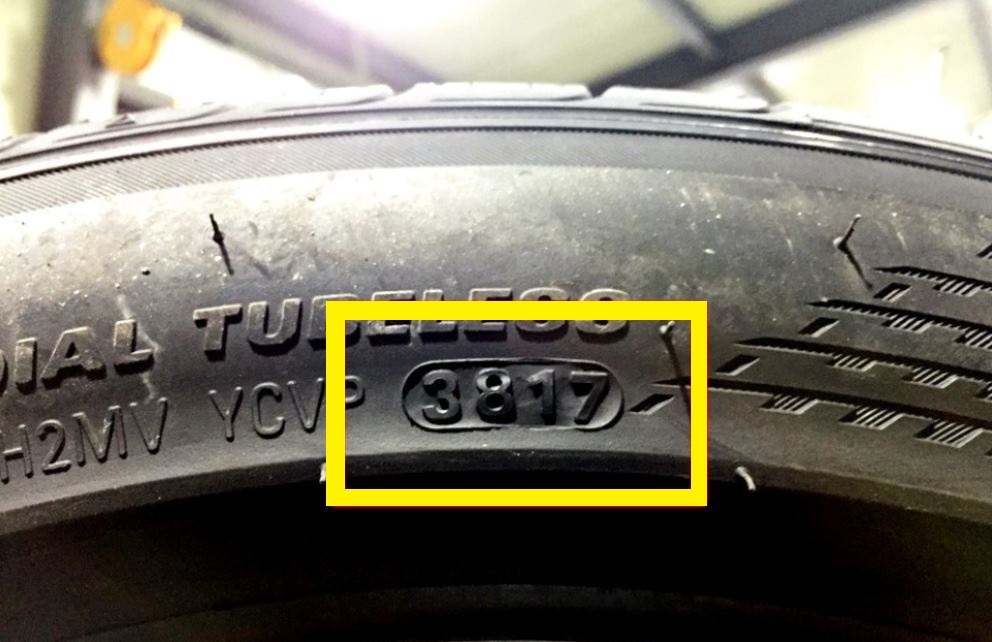 위의 그림에 보이는 타이어는 3817 이므로 2017년 38주 차에 생산된 타이어 이므로, 이미 생산된 지 5년이 훌쩍 지난 타이어입니다. 혹시 마모가 덜 되어 있더라도 안전을 위해 타이어를 교환하시는 것이 좋습니다.